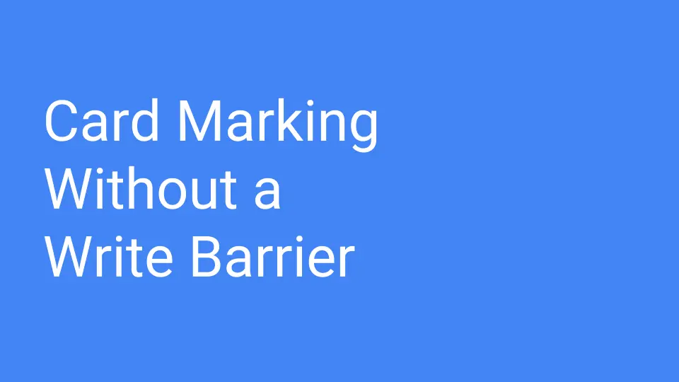 What about card marking without a write barrier? It turns out that Austin has these files and he writes into these files all of his crazy ideas that for some reason he doesn't tell me about. I figure it is some sort of therapeutic thing. I used to do the same thing with Eliot. New ideas are easily smashed and one needs to protect them and make them stronger before you let them out into the world. Well anyway he pulls this idea out.