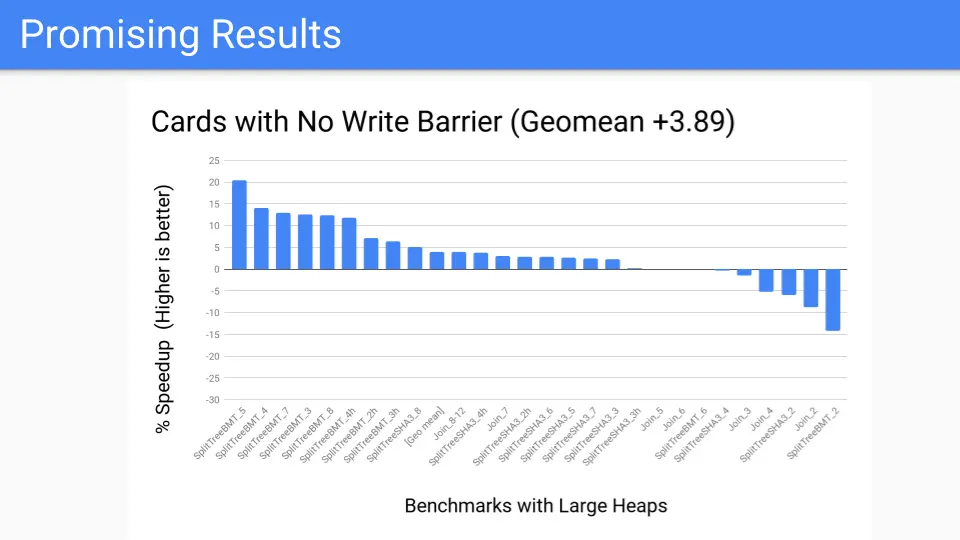 We took the measurement. This is pretty good. This is the benchmark suite for large heaps which should be good.