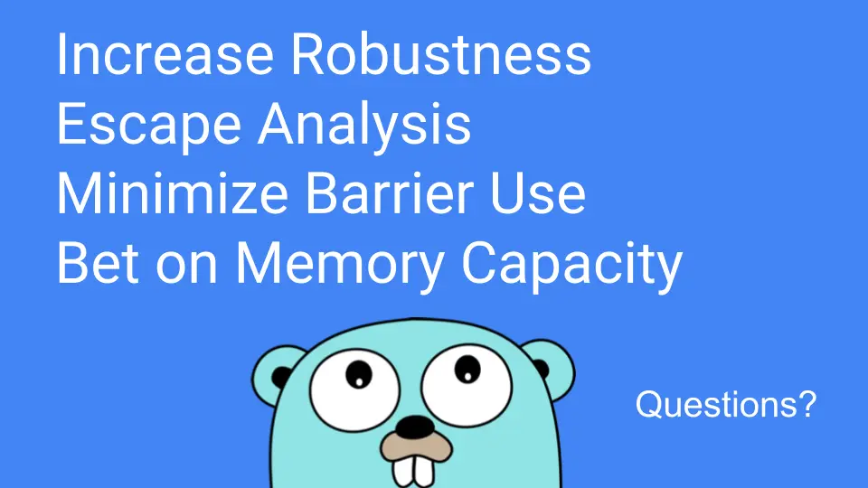 We will also be looking into how to improve our already pretty good escape analysis and optimize for Go's value-oriented programming. Not only in the programming but in the tools we provide our users.