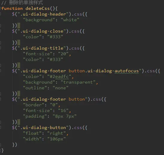 只需要单独在common文件中写一个deleteCss函数,然后哪里需要就在哪里调用,妈妈再也不担心我一个项目要用两种不一样的弹窗样式啦~