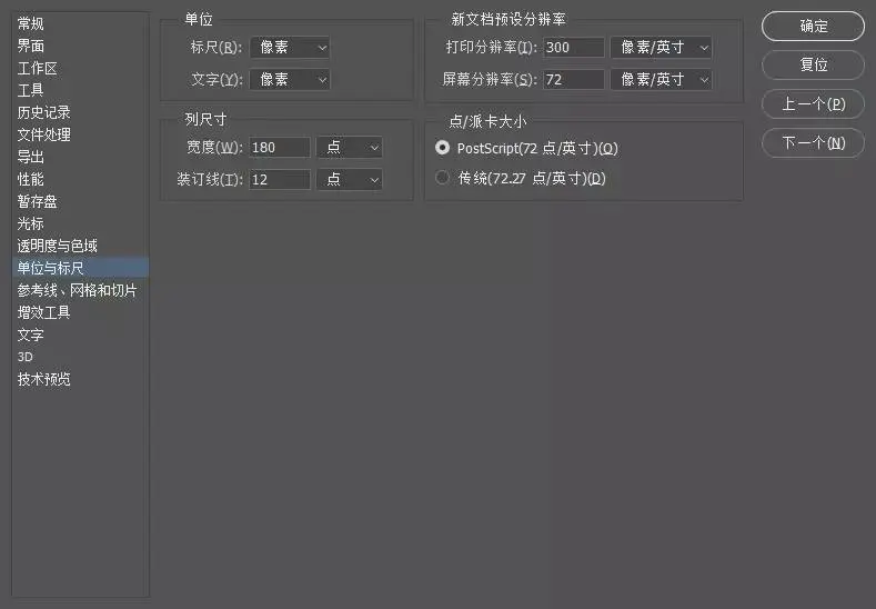 单位标尺设置为px