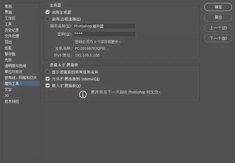 在首选项中,选择增效工具,里面的生成器打钩