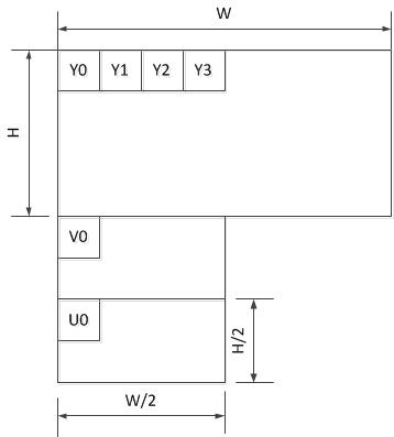 YYYY UU VV - yuv420: packet采样: