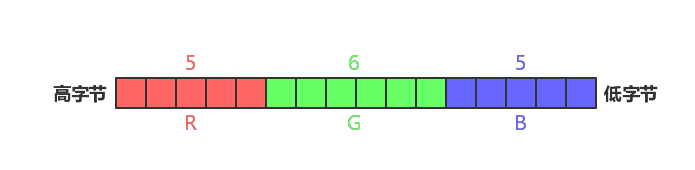 bit(2 个字节)来表示,R 用 5 个bit、G 用 6 个bit、B 用 5 个bit表示。 -