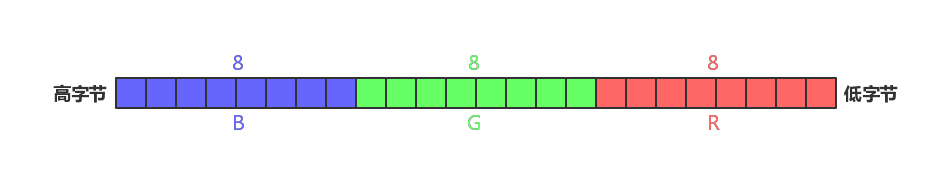 color为存储某一个像素点的变量)R = color & 0x7C00// 获取高字节 5 个 bitG = color & 0x03E0// 获取中间的 5 个 bitB = color & 0x001F// 获取低字节 5 个 bit