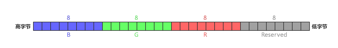 bit(4个字节)来表示,R、G、B 均用 8bit表示,最后 1 个字节保留 -