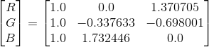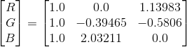举例:YUV ——> RGB 常规转换矩阵。