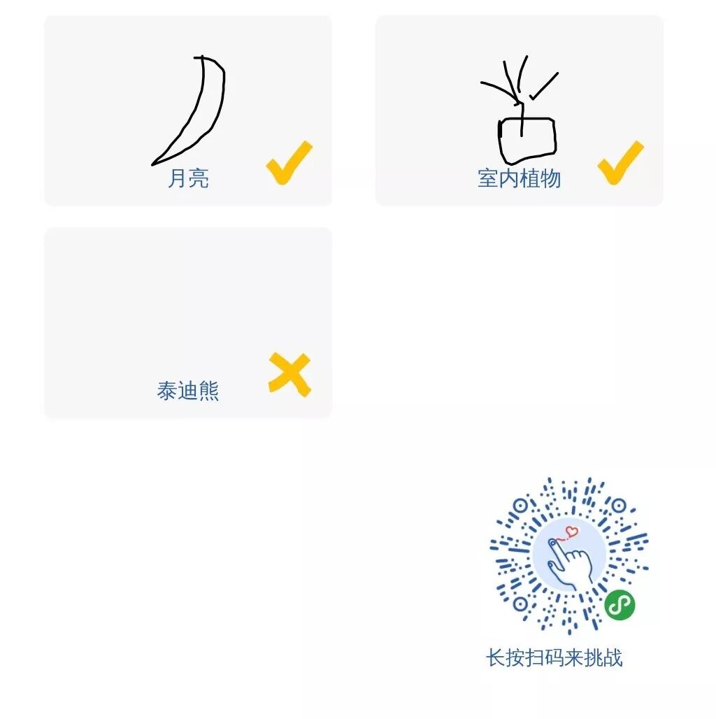 就如前面说的,“猜画小歌”就是一款 AI 小程序,它的匹配规则还是很宽泛的,所以很多灵魂画手就上线了,基本上靠一点边“画作”就可以被识别出来。