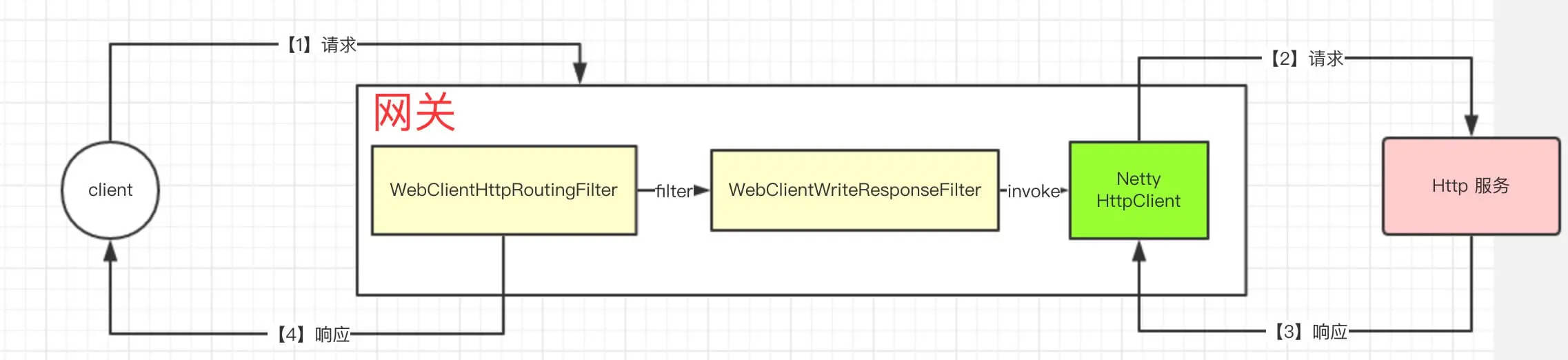 res到CLIENT_RESPONSE_ATTR。后续 WebClientWriteResponseFilter 将响应写回给客户端。 - 第 52 行 :提交过滤器链继续过滤。