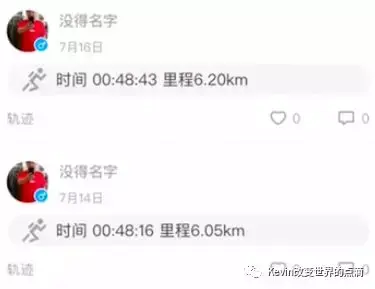 悦动圈在系统动态下feed的文案:时间+里程