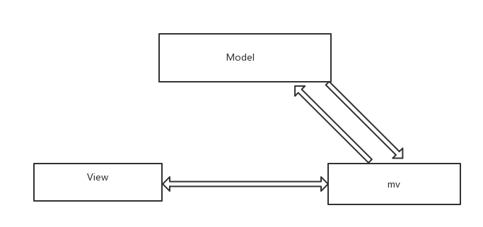mvp(modal-mv-view) 其中view和mv双向绑定,其中view 的改变会影响mv,mv 的改变会影响view的显示