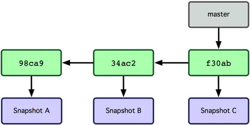 Git 会使用 master 作为分支的默认名字。在若干次提交后,你其实已经有了一个指向最后一次提交对象的 master 分支,它在每次提交的时候都会自动向前移动。