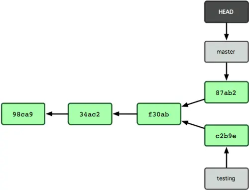 PS: 由于 Git 中的分支实际上仅是一个包含所指对象校验和(40 个字符长度 SHA-1 字串)的文件,所以创建和销毁一个分支就变得非常廉价。说白了,新建一个分支就是向一个文件写入 41 个字节(外加一个换行符)那么简单,当然也就很快了。