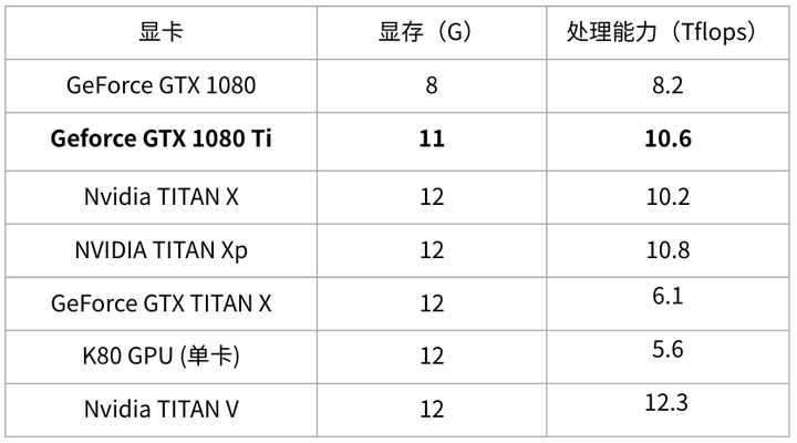 - tensorcore的性能目前来看还无法全面发挥出来, 这里不考虑. 其它的tesla系列像P100这些企业级的显卡这里不列了,普通消费者不会买, 而且性价比较低(一台DGX 1上百万.....)
