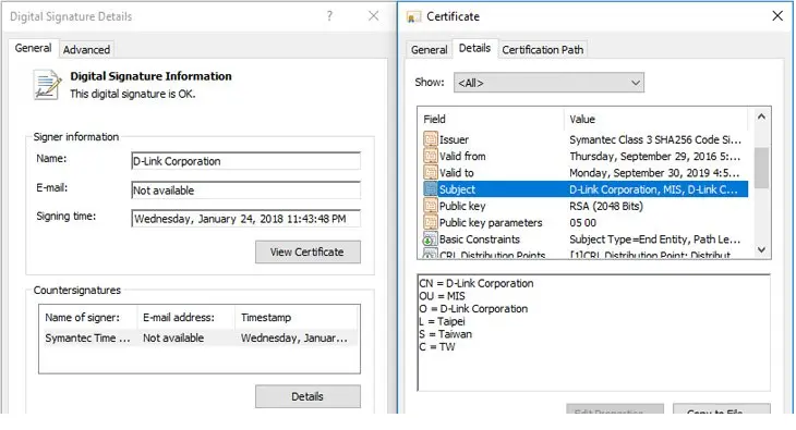 研究人员发现了一对恶意软件家族,这些恶意软件家族使用来自台湾科技公司的妥协证书进行了数字签名,其中包括生产网络设备的跨国公司D-Link。