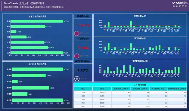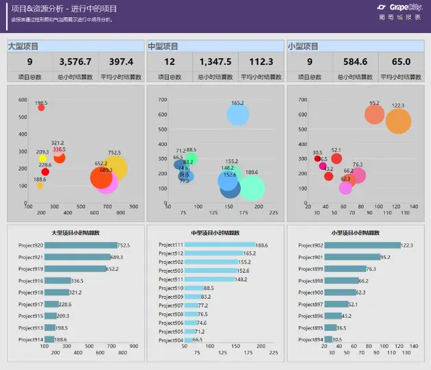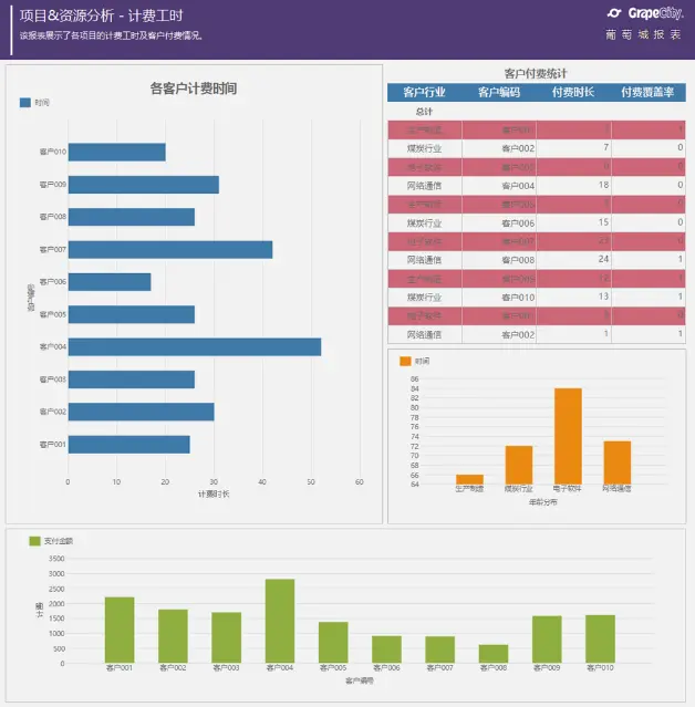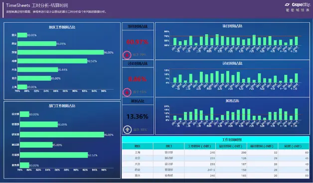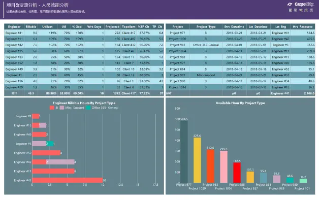 葡萄城行业报表模板库此次发布了包含人员效能分析、项目资源分析、计费工时分析、结算时间分析等8张在项目管理中运用的典型报表模板。