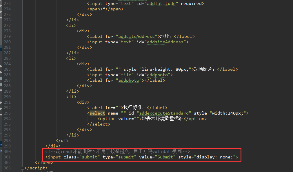 由于使用dialog.js弹窗插件,其插件自带了两个button按钮,分别为返回和确定,所以在进行表单验证时,我们并不需要在form表单中创建这两个button,只需要一个隐藏的class名为submit的input按钮即可(用于判断validate的提交),然后使用dialog自带的两个button按钮,具体请往下看: