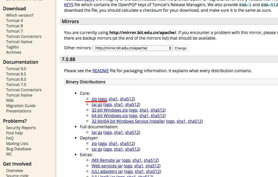 在官网下载 Tomcat7.0版本:tomcat.apache.org/download-70…