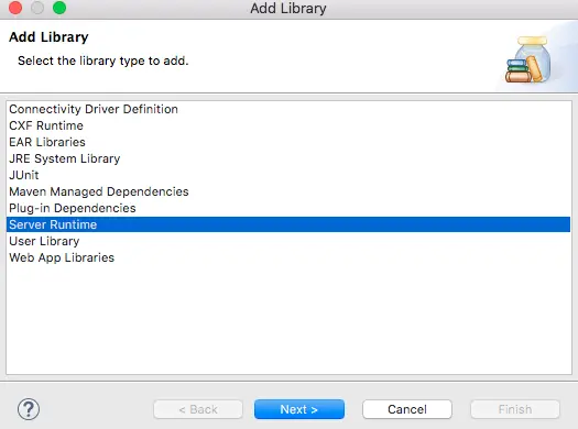 Project -> Properties -> Java Build Path -> Add Library -> Server Runtime -> next -> 选择你的Server -> Finish