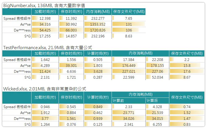 无论从时间、内存还是文件存储空间来看,Spread 表格组件都是同类产品中当之无愧的“性能怪兽”。