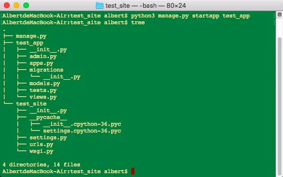 python3 manage.py startapp test_app # 在该工程下创建一个测试项目