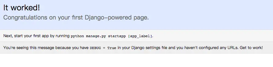 你可以看到Django开始工作了,接下来写Hello World,只需要修改其中的两个文件即可