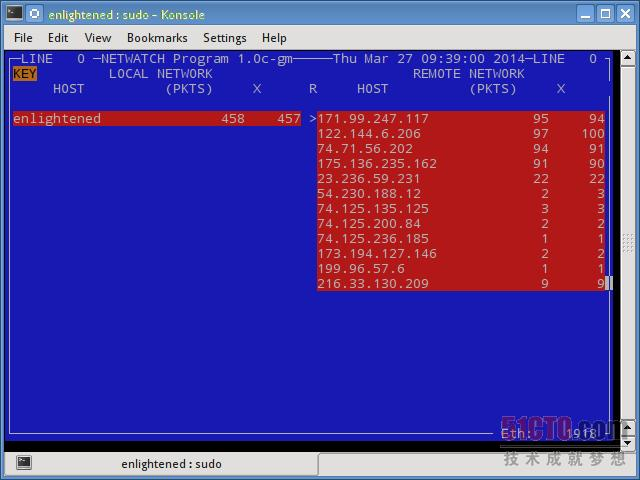 netwatch是netdiag工具库的一部分,它也可以显示本地主机与其他远程主机之间的连接,并显示哪些数据在每个连接上所传输的速度。