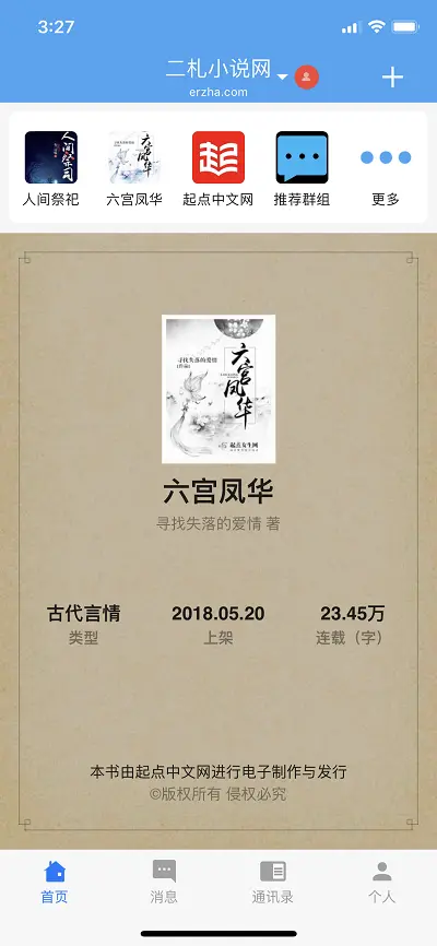 那就来【阿卡信 二札小说网 erzha.com】,用阿卡信app、微信、浏览器扫一扫即可获取你自己的小说网哦!