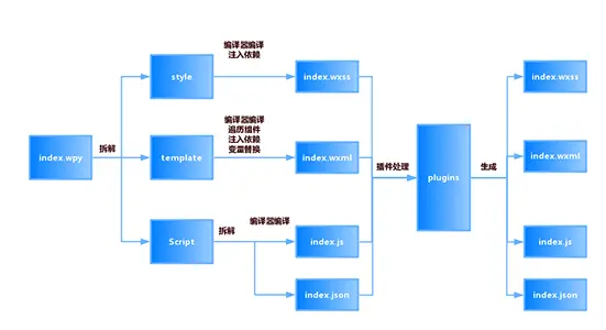 - 小程序入口、页面、组件文件名的后缀为.wpy;外链的文件可以是其它后缀。