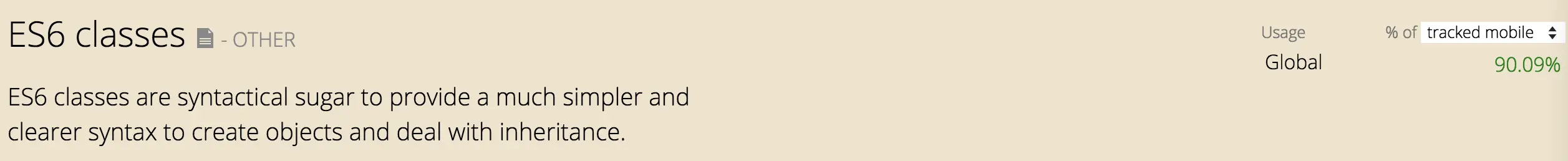 但实际上,大部分现代浏览器已经原生支持 class 语法,比如 iOS Safari 从 2015 年的 iOS 9.0 开始就支持了,根据 caniuse 的数据,目前移动端上 90% 用户的浏览器都是原生支持 class 语法的: