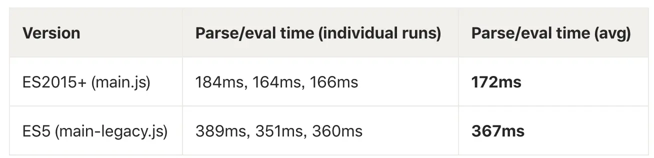 也就是说,在当下 2018 年,对于大部分用户而言,我们根本不需要把代码编译到 ES5,不仅体积大,而且运行速度慢。我们需要做的,就是把代码编译到 ES2015+,然后为少数使用老旧浏览器的用户保留一个 ES5 标准的备胎即可。