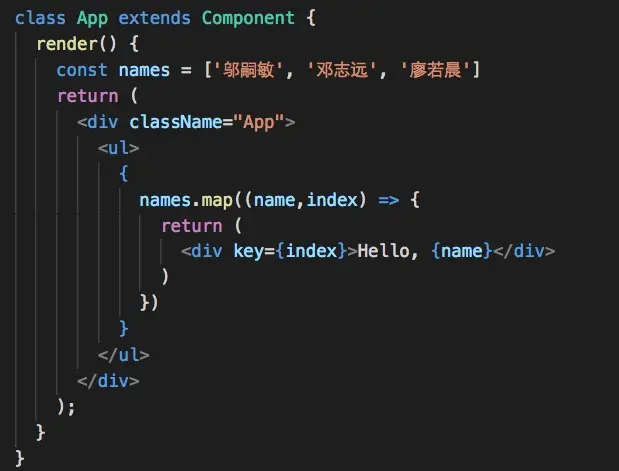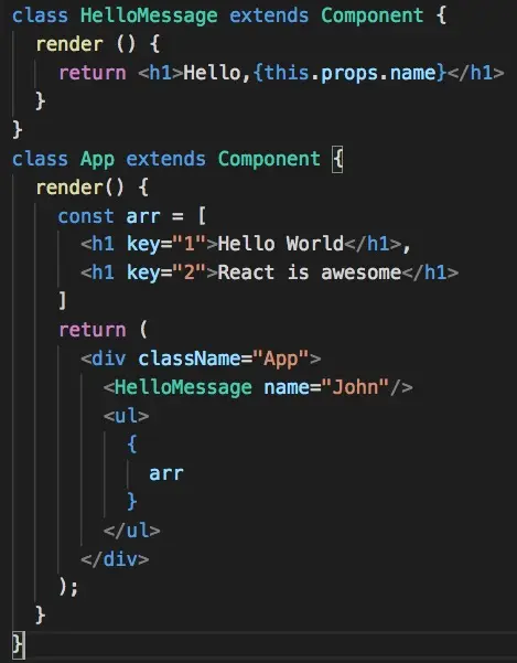 JSX 允许直接在模板插入 JavaScript 变量。如果这个变量是一个数组,则会展开这个数组的所有成员.我们定义了一个arr,里面是2个标题标签,通过在ul模板中添加{arr}来实现效果**(注意不是vue的"",两者不要搞混了)**