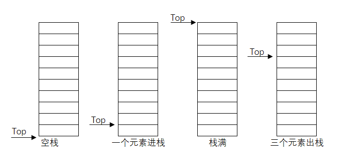 顺序栈的进栈和出栈操作都是在栈顶进行的,所以只需要更改栈顶位置即可达到进栈和出栈的目的。