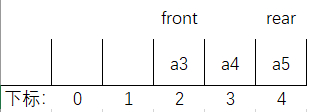 因为顺序队列出队时时间复杂度较高,有问题总是要解决的,为什么一定要让队头出现在下标为0的位置呢?所以有人提出了不去限制队列元素必须存储在数组的前n个单元这一条件,这样队头元素就不需要一定在下标为0的位置。但是随着队列元素的出队,队头指针在向后移动,假设队尾指针已经在maxsize-1的位置,这个时候虽然队列还有存储空间,但是队尾已经无法进队了,比如下图这样: