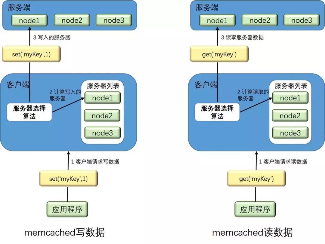 服务端并没有 “ 分布式 ” 功能。每个服务器都是完全独立和隔离的服务。 Memcached的分布式,是由客户端程序实现的