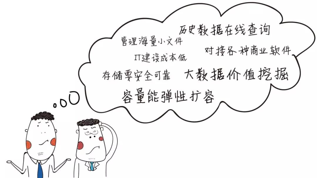 但由于ECM接口为非标准协议,需要专门进行应用开发,应用改造成本高,目前主要应用在金融的柜台、信贷和后督的影像系统。更重要的是,ECM的投资成本较高,百TB数据的存储成本高达数百万,不适合存储音视频等价值密度较低的数据,维护的成本也非常高。