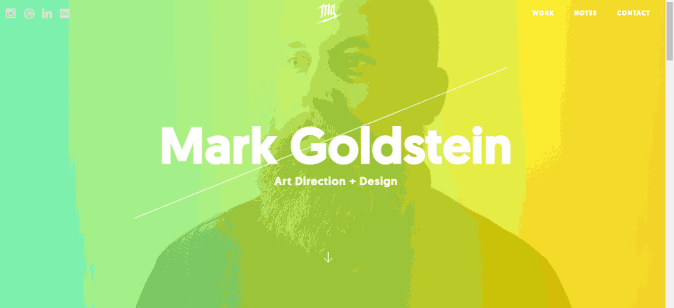 该款作品集页面设计除了选择渐变色来增加网页吸引力,还通过各种渐变色的循环变化,极大地增强了页面的视觉表现力。