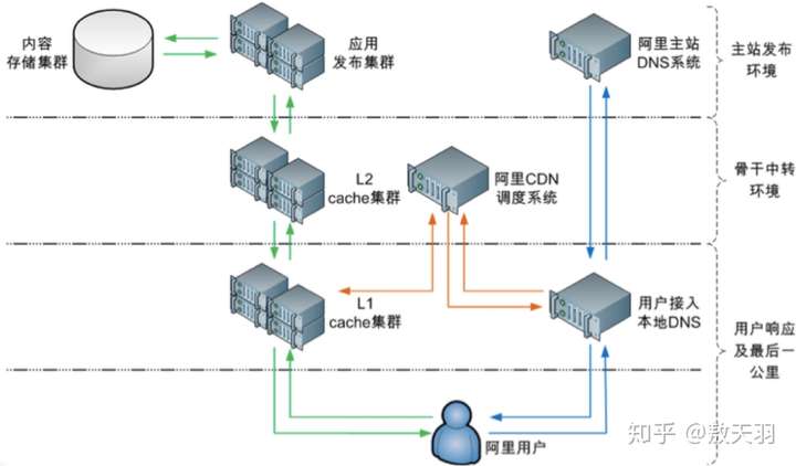 拿来阿里云 CDN 的架构图口胡一下,我也没有搭建过,如果解释的不对请大家指出。
