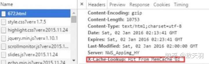 在各大厂商的 CDN 返回的数据中都会有一个 X-Cache,上面内容是 Hit 或者 Miss,还会加上诸如 Memory 或者 Disk 的缩写表示内存还是磁盘,如果出现 Upstream 或者 Miss 则表示没有命中。