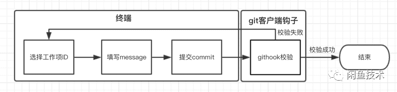 当用户选择了工作项ID并填写了message后,会生成最终的commit message,并调用 git commit提交代码。