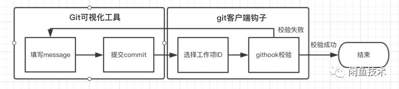 命令行选择工作项ID的关联方案并不适用于Sourcetree等Git可视化工具,我们需要给平常使用Git可视化工具提交代码的同学提供一套可替代的方案。当开发同学点击Git可视化工具上的"提交"按钮的一瞬间,实际上也是执行了 git commit命令,那么也会走 commit-msg钩子的逻辑,因此我们可以在 commit-msg钩子做校验之前,弹窗提示用户选择工作项ID。