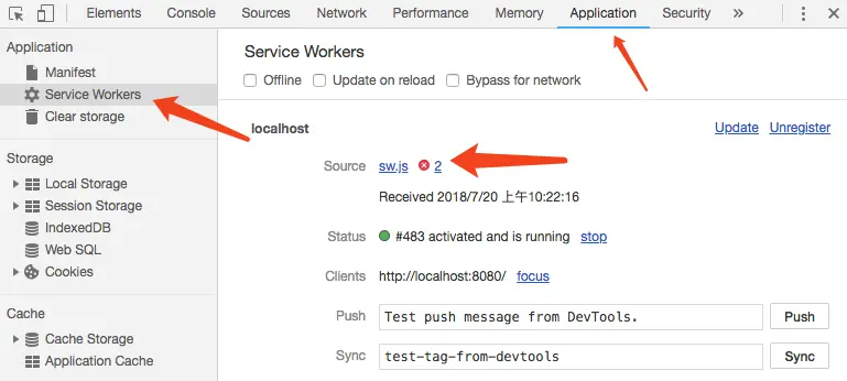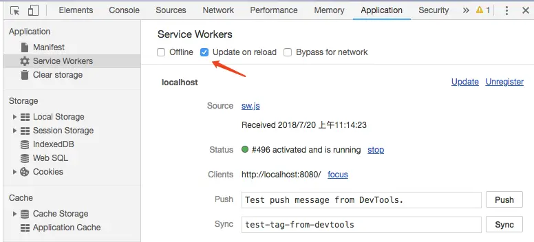 那你肯定是没有告诉浏览器刷新时候要更新你的sw.js文件。可以勾选这里,然后再次刷新。