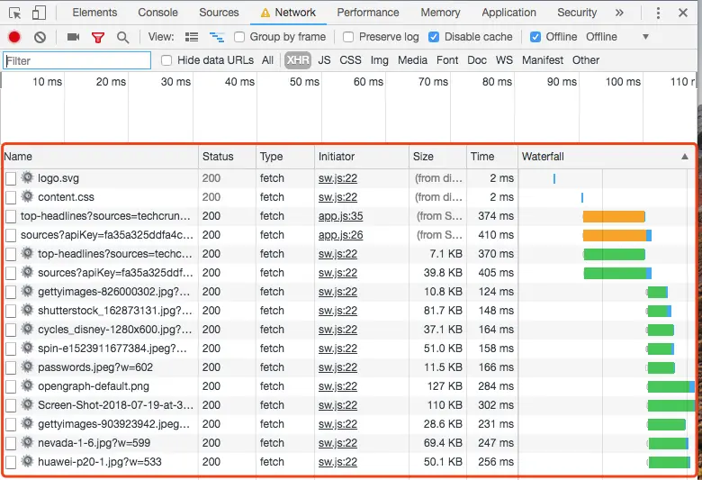 编写完这些之后我们可以先勾选offline按钮,之后刷新页面,发现我们的站点依然有数据。