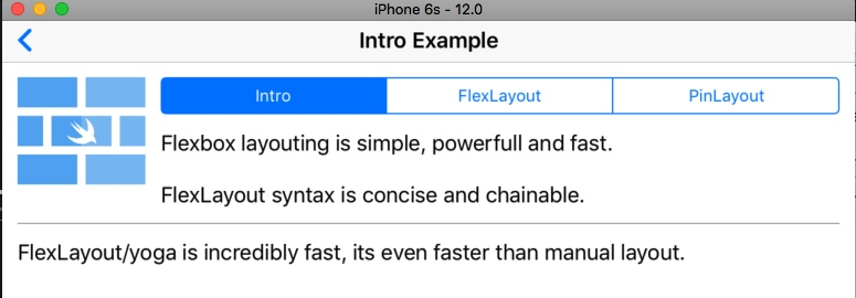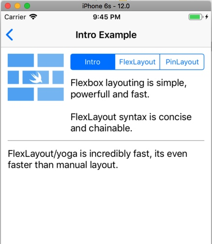 然后不知怎么的又发现了一个YogaKit的封装实现(Swift的),叫做FlexLayout,看了它的使用Demo,一时无语凝噎,相见恨晚!