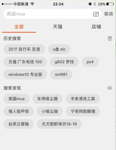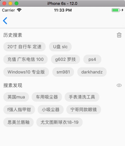 剁手党都很熟悉了,这是淘宝首页的搜索框点击后的界面。搜索框, tab page什么的就先忽略了, 单讲 历史搜索 以下的核心布局代码: