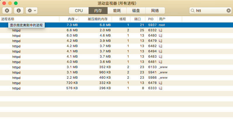 可以在 活动监视器 看看httpd的路径,取样进程