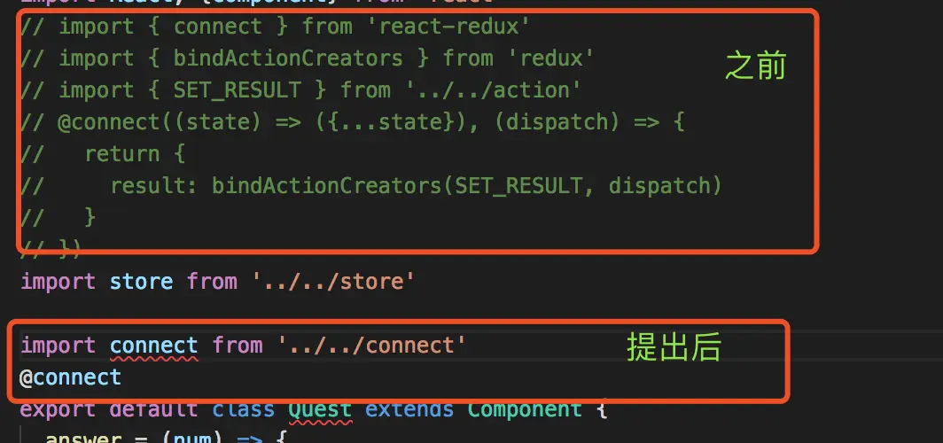 复杂的redux应用可以将connect 从组件中拆分出来,放到一个connect.js中