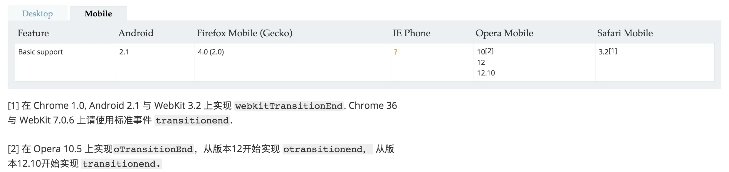 以transitionend事件为例,animationend事件相似。