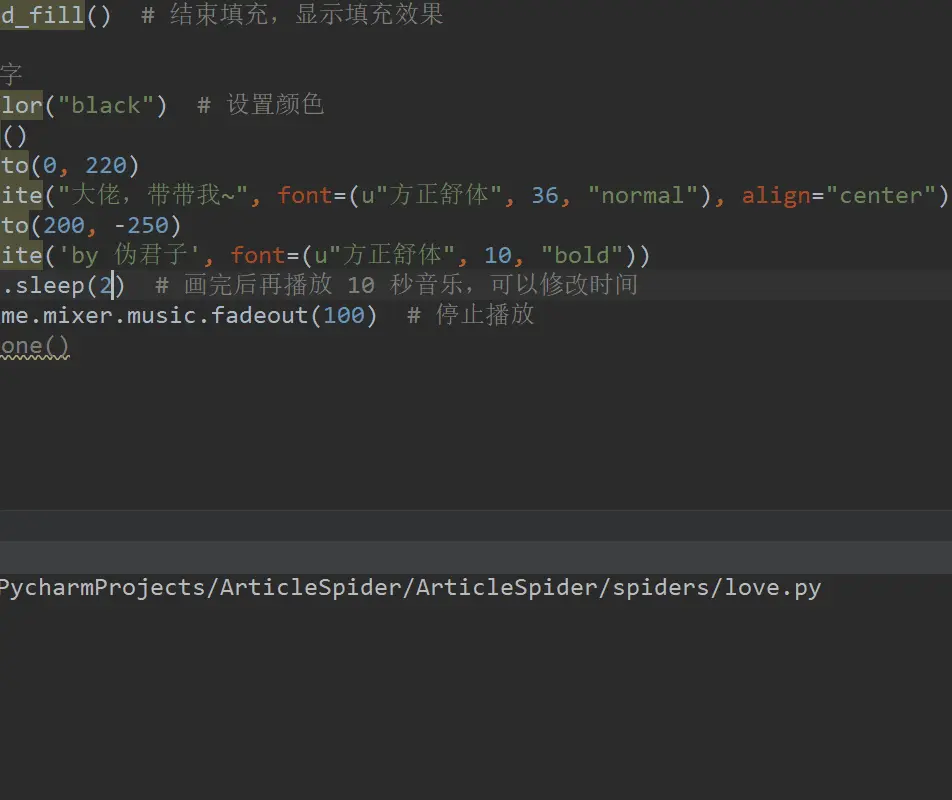 time.sleep(10) # 画完后再播放 10 秒音乐,可以修改时间