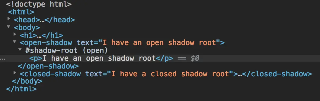 更具体的文章请查看 Open vs. Closed Shadow DOM(有可能需要科学上网)